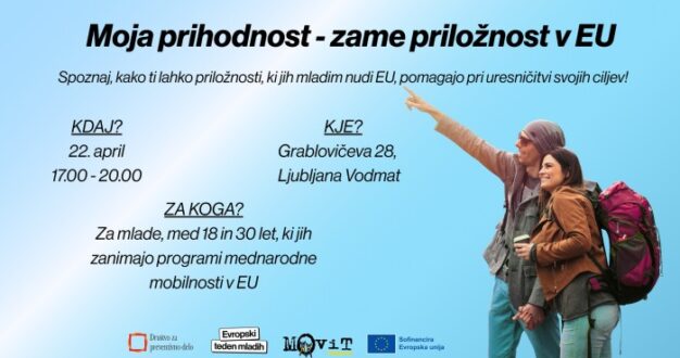 VečDruštvo za preventivno delo vabi, da se jim pridružite na delavnici, kjer boste skupaj raziskovali, kako vam lahko EU programi mednarodne mobilnosti za mlade pomagajo narediti naslednji korak.