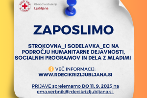 VečRdeči križ Slovenije Območno združenje Ljubljana vabi v ekipo strokovno_ega sodelavko_ca programov na področju humanitarne dejavnosti, socialnih programov in dela z mladimi.