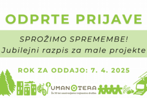 VečSLOGA Umanotera letos obeležuje 30 let svojega delovanja. Ob tej priložnosti objavlja enkratni jubilejni razpis “Sprožimo spremembe”, s katerim želijo donacije nameniti tudi drugim projektom, ki bodo prispevali k udejanjanju pravičnega podnebnega prehoda in s tem podprli njihovo vizijo pravične družbe.