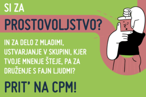Društvo CPM vabi vse, ki vas veseli delo z mladimi ter ustvarjanje v skupini, da postanete njihov_a prostovoljec_ka.
