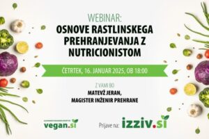 VečSlovensko vegansko društvo vabi v četrtek, 16. januar 2025, ob 18.00 na LIVE Webinar: Osnove rastlinskega prehranjevanja z nutricionistom.
