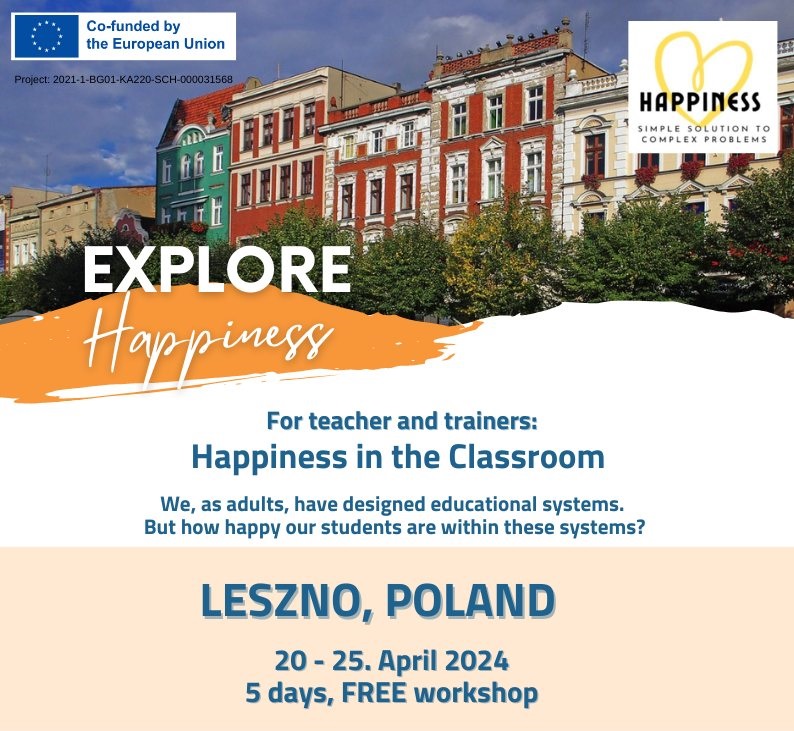 Sreča – preprosta rešitev zapletenih problemov je rezultat projekta Erasmus+ in je zasnovan za učitelje, trenerje in njihove študente tako, da daje prednost dobremu počutju poleg akademskega uspeha.