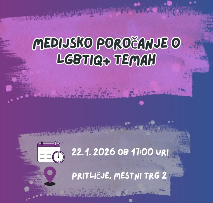 Legebitra vabi na dogodek Medijsko poročanje o LGBTIQ+ temah, ki bo potekal 22. januarja 2026 ob 17.00 v Pritličju.