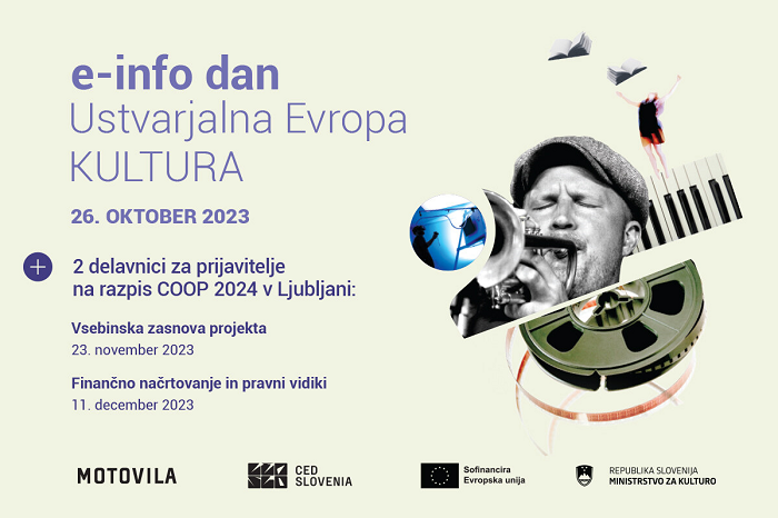 Motovila (CED Slovenija) za zainteresirane predstavnike organizacij kulturnega in ustvarjalnih sektorjev v četrtek, 26. oktobra 2023, organizira spletni informativni dan.