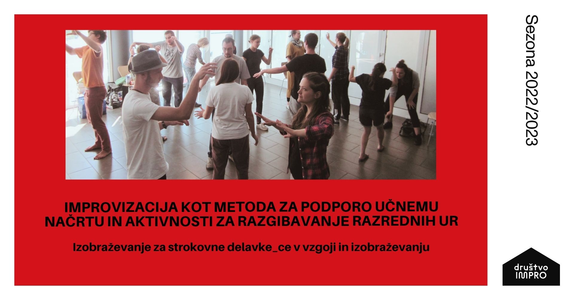 Društvo Impro vabi na usposabljanje Improvizacija kot metoda za podporo učnemu načrtu in aktivnosti za razgibavanje razrednih ur.
