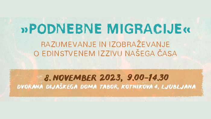 Društvo Humanitas in Umanotera, Slovenska fundacija za trajnostni razvoj vabita na 8. nacionalno konferenco globalnega učenja z naslovom “Podnebne migracije: razumevanje in izobraževanje o edinstvenem izzivu našega časa”. Konferenca bo potekala v sredo, 8. novembra 2023, v Dvorani Tabor na Kotnikovi 4 v Ljubljani.
