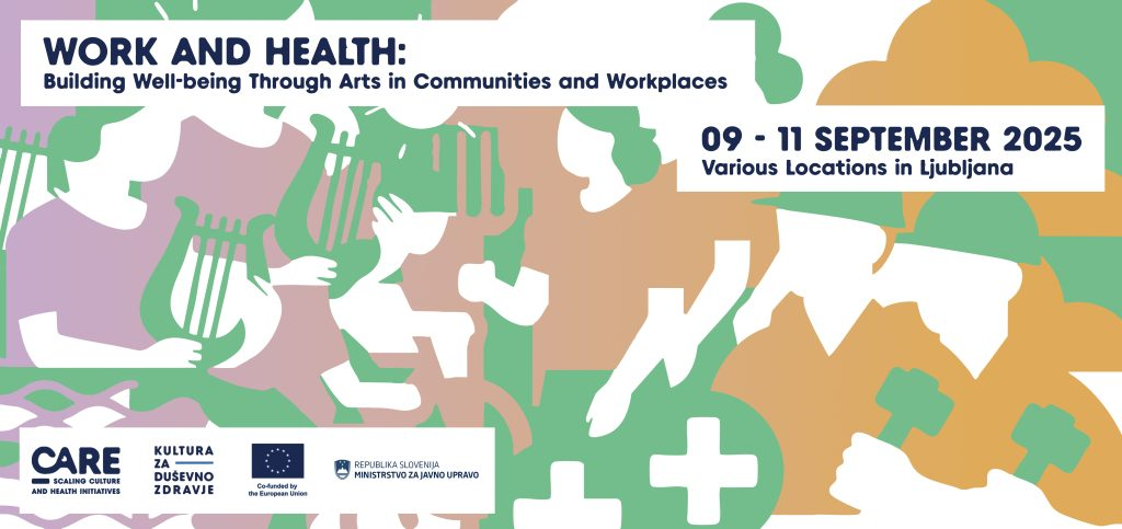 V Društvo Asociacija v okviru projektov CARE in Kultura za duševno zdravje v sodelovanju s partnerji v obeh projektih na različnih lokacijah v Ljubljani organizira konferenco Zdravje in delo: Izgradnja dobrega počutja skozi umetnost v skupnostih in na delovnih mestih.