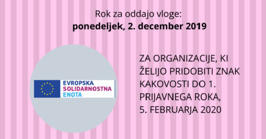 Še vedno velja, da organizacije lahko vlogo oddajo kadarkoli, veljaven znak kakovosti pa mora organizacija imeti najkasneje na dan prijavnega roka. V kolikor bi želeli pridobiti znak kakovosti do 1. prijavnega roka v letu 2020 (5. februar), pa organizacijam svetujejo, da se pri oddajo držijo zgoraj navedenega roka.