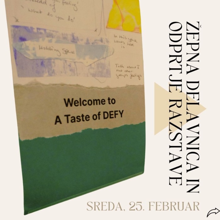 Izkušnje in spoznanja sodelujočih v projektu, so navdihnili kar dva zina in novo nastal mini ‘priročnik’ za izobraževalce o spopadanju s težkim spoznanjem in nelagodjem. Majhen del vsebine novonastalih gradih (trenutno še v angleškem jeziku) bodo delili skozi žepno delavnico in razstavo ter vam s tem približali prostor, v katerem so soustvarjali in raziskovali v okviru projekta DEFY.