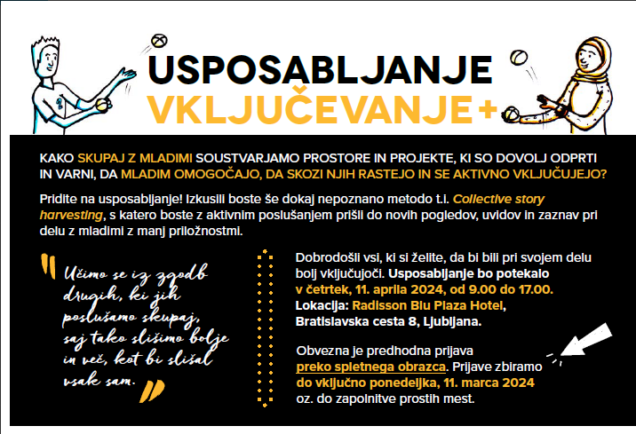 - razširili poznavanje konceptov vključujočega mladinskega dela,