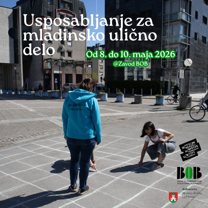 Usposabljanje je namenjeno vsem mladinskim (uličnim) delavkam_cem, ki že imajo izkušnje na področju mladinskega uličnega dela in vsem tistim, ki na to področje šele vstopate ali pa ga želite spoznati. Potekalo pa bo od 8. do 10. maja, na Zavodu Bob (Robbova ulica 15, Ljubljana).