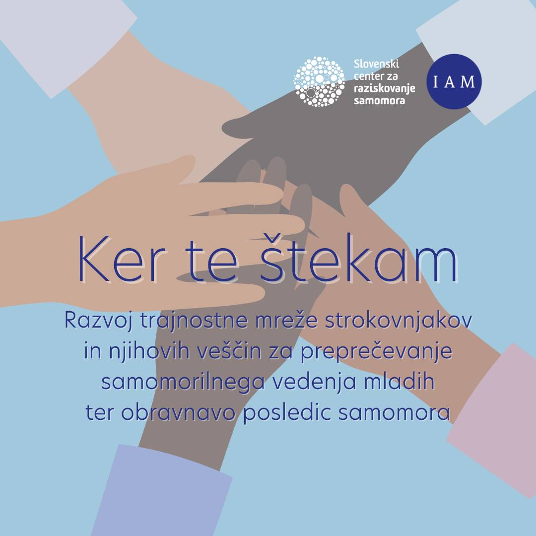 V oktobru 2024, mesecu duševnega zdravja, na UP IAM Slovenskem centru za raziskovanje samomora pričenjajo z aktivnostmi v okviru novega projekta “Ker te štekam: Razvoj trajnostne mreže strokovnjakov in njihovih veščin za preprečevanje samomorilnega vedenja mladih ter obravnavo posledic samomora”.