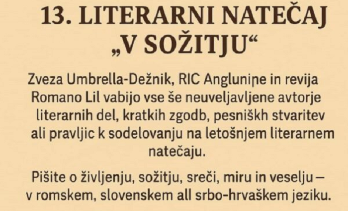 Zveza Umbrella-Dežnik, RIC Anglunipe in revija Romano Lil odpirajo 13. literarni natečaj V sožitju.
