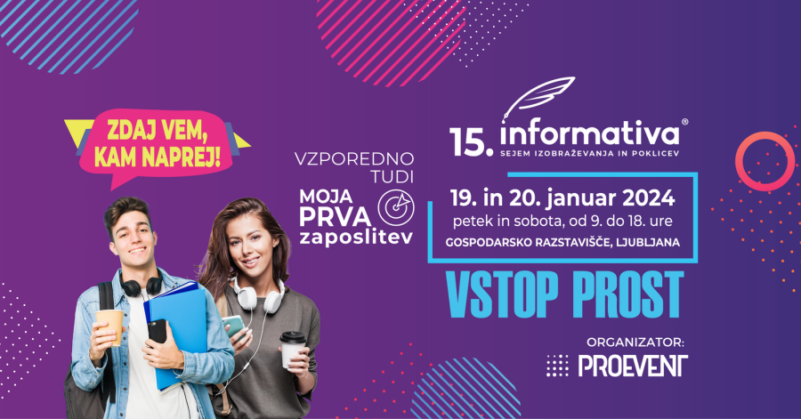 Vseslovenski Sejem izobraževanja in poklicev, 15. Informativa bo potekala 19. in 20. januarja 2024 na Gospodarskem razstavišču.