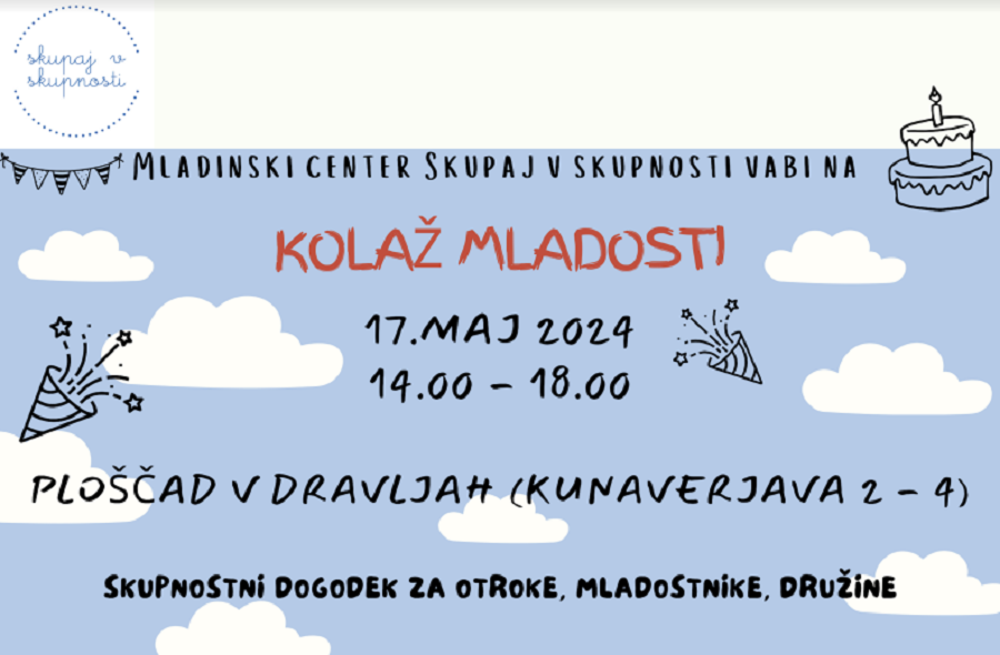 Na ploščadi pred mladinskim centrom Skupaj v skupnosti v ljubljanskih Dravljah se bo ponovno odvijal skupnostni dogodek z raznolikimi aktivnostmi, delavnicami, nastopi in nagradami.