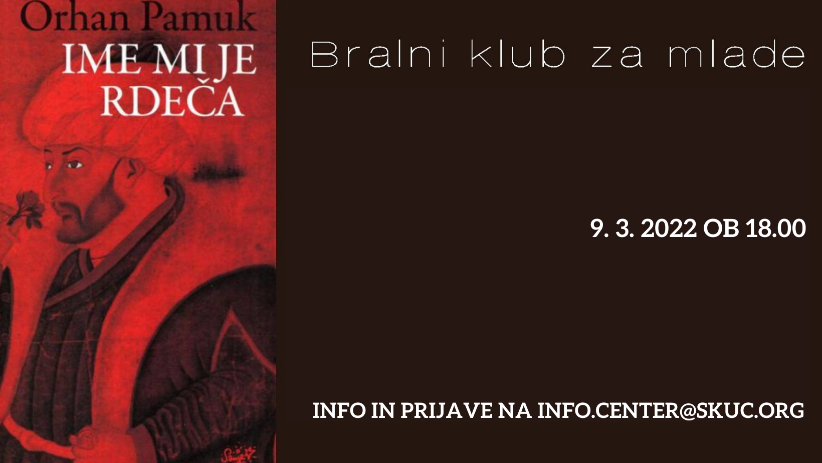 Info center ŠKUC vabi na bralni klub za mlade, na katerem bo tekel pogovor o knjigi Ime mi je rdeča avtorja Orhana Pamuka.