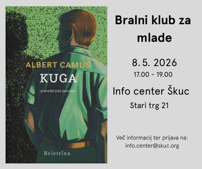 Info center Škuc vabi na Bralni klub za mlade, ki bo 8. maja 2026 od 17.00 do 19.00.