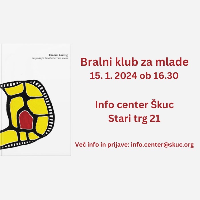 Bralni klubu bo potekal 15. januarja ob 16.30 v Škucu na Starem trgu 21.
