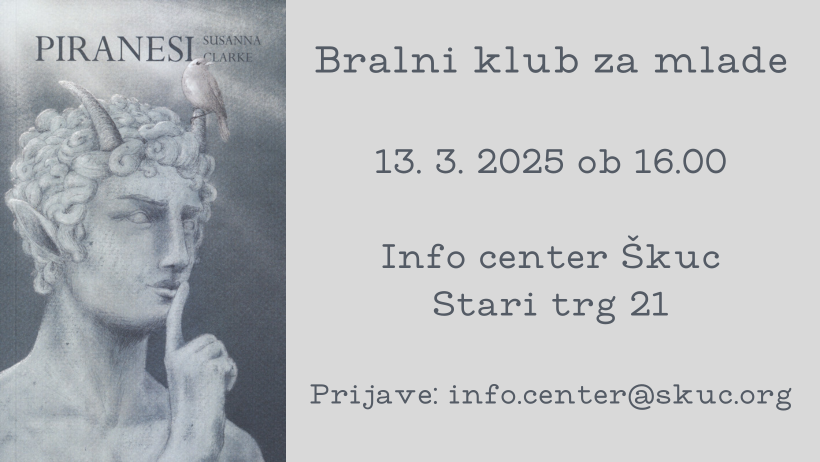 Info center Škuc vabi na bralni klub za mlade. Na marčevskem srečanju bo debata tekla o knjigi Piranesi avtorice Susanne Clarke.
