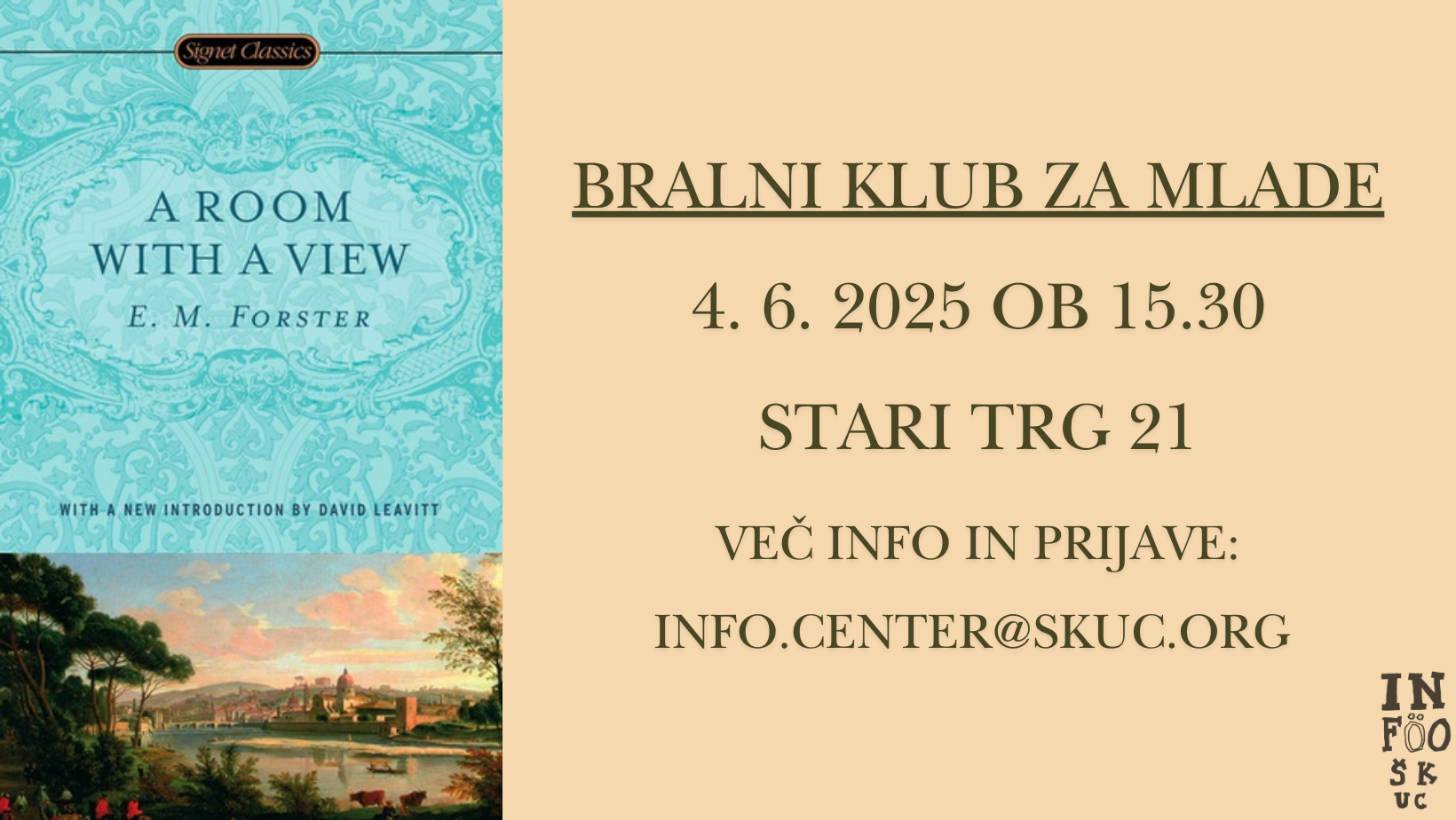 Na tokratnem bralnem klubu Info centra Škuc se bere delo E. M. Forsterja Soba z razgledom.