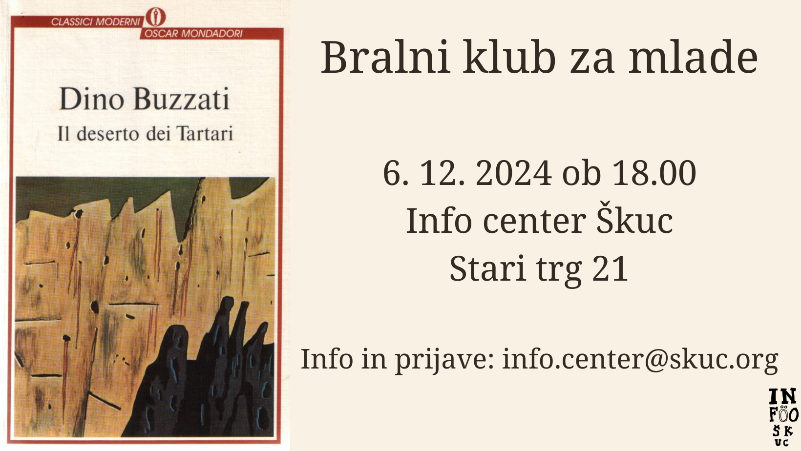 Info center Škuc vabi na bralni klub za mlade. Tokrat se bere knjigo Tatarska puščava Dina Buzzatija.