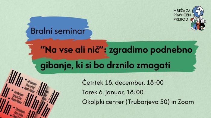 Mreža za pravičen prehod vabi na bralni seminar “Na vse ali nič”: zgradimo podnebno gibanje, ki si bo drznilo zmagati.