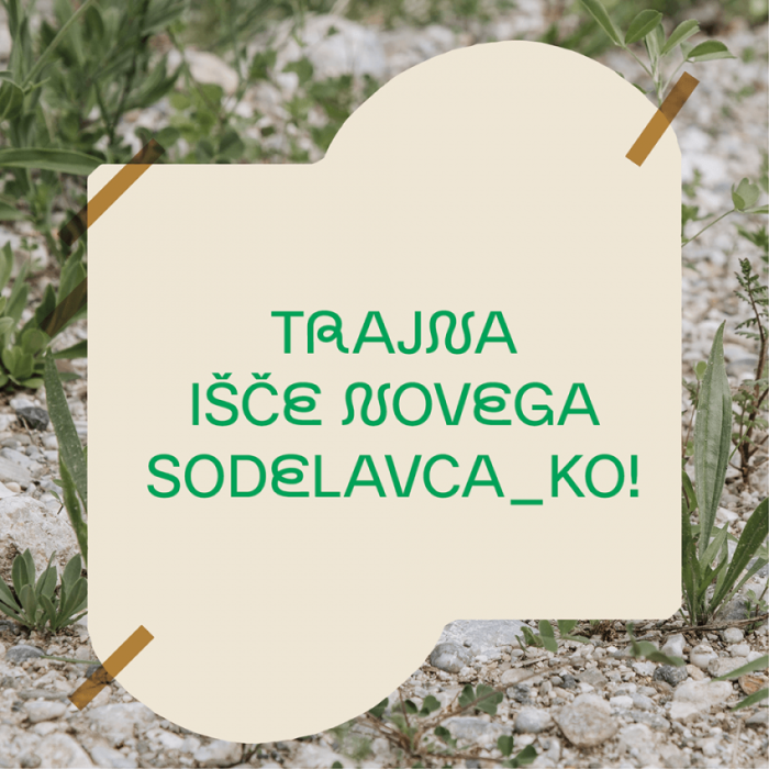 Društvo Trajna išče vodjo administracije in financ. Iščejo osebo, ki ima izkušnje z nacionalnimi in evropskimi projekti, dobro pozna programe za beleženje in spremljanje projektnega poslovanja ter se vidi v sodelovanju z dinamično ekipo kreativcev.