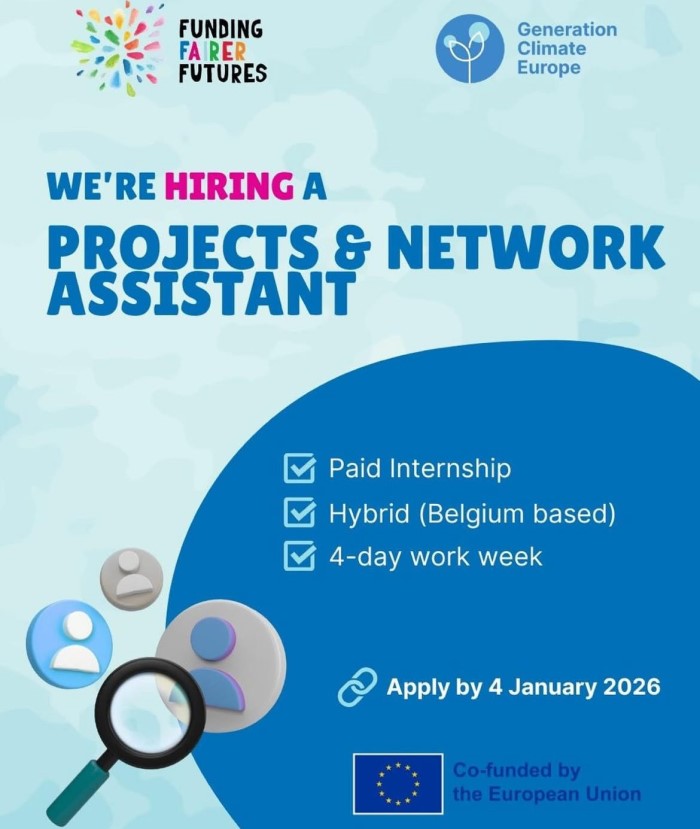 Ponujajo 6-mesečno učno prakso (z možnostjo podaljšanja za nadaljnjih 6 mesecev) osebi, ki želi pridobiti praktične izkušnje z vključevanjem v mreže in koordinacijo dogodkov v nevladnih organizacijah in okoljskem sektorju.