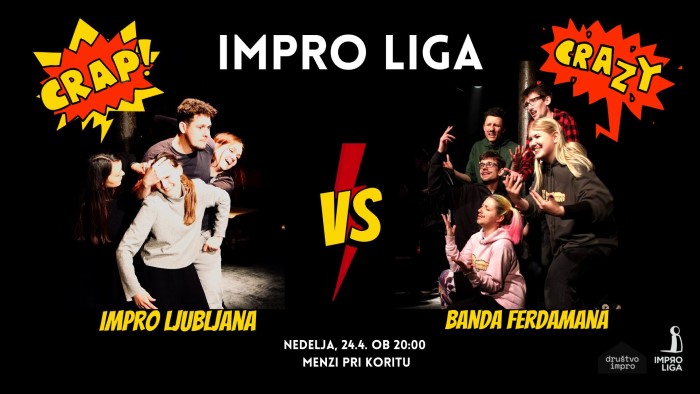 Pomerili se bosta ekipi Impro Ljubljana s celim spektrom ljubljanstva in Banda Ferdamana – impro kralji štajerstva. Obe ekipi sta že okusili zmago na prejšnjih tekmah in sta jih željni še več.