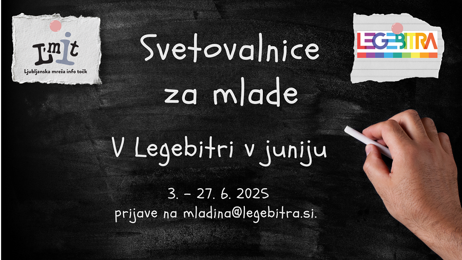 Mladi se lahko prijavite na različne termine in nas povprašate karkoli vas zanima ali pa potrebujete le podporo pri iskanju informacij. Svetovanja v mesecu juniju bo nudilo društvo Legebitra, civilnodružbena LGBTIQ+organizacija, ki deluje na naslednjih področjih: človekove pravice, izobraževanje, duševno,fizično in spolno zdravje ter se zavzema za družbene in sistemske spremembe, ki temeljijo na spoštovanju spolne usmerjenosti, spolne identitete in/ali spolnega izraza. Pri delovanju upošteva presečnost ostalih osebnih okoliščin, kot so zdravstveno stanje, narodnost, rasa ali etnično poreklo, jezik, vera ali prepričanje, hendikep, starost, družbeni položaj, premoženjsko stanje, izobrazba ali katero koli druga osebna okoliščina. V mesecu juniju nudijo informiranje v naslednjih terminih: