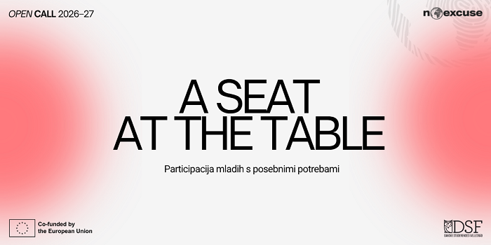 No Excuse Slovenia vabi, da se pridružite Erasmus+ treningu (A Seat at the Table), ki bo potekal med 23. in 26. 4. v Ljubljani.