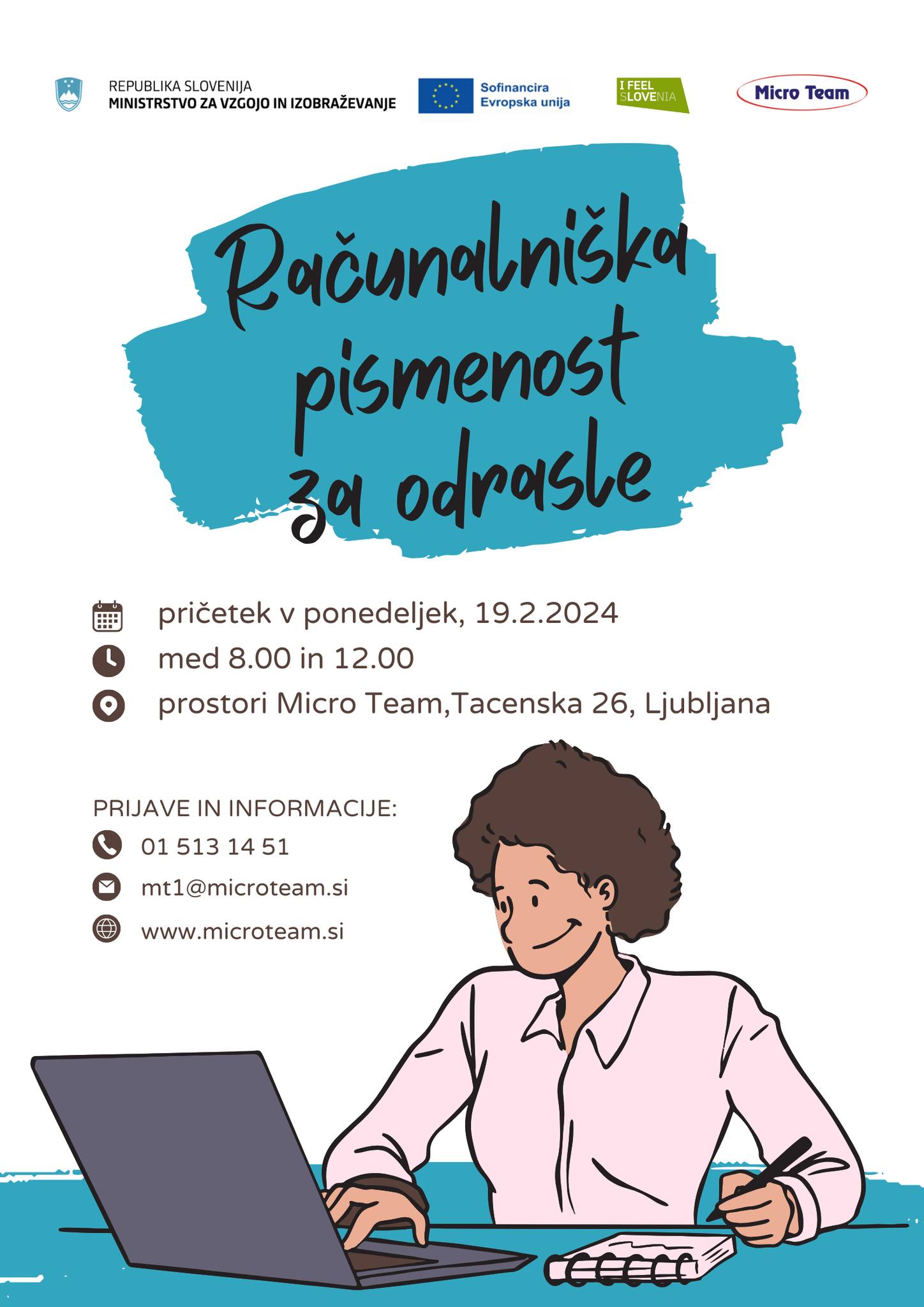 Podjetje Micro Team vabi na brezplačni 60 urni tečaj Računalniška pismenost za odrasle.