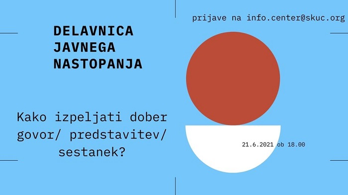 Info center Škuc vabi na delavnico “Kako izpeljati dober govor/ predstavitev/ sestanek?”.