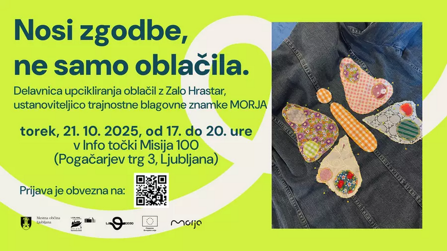 Info točka Misija 100 vabi na brezplačno delavnico Nosi zgodbe, ne samo oblačila, na kateri boste lahko prenovili svoja ‘stara’ oblačila, jim dodali svoj pečat in novo zgodbo.