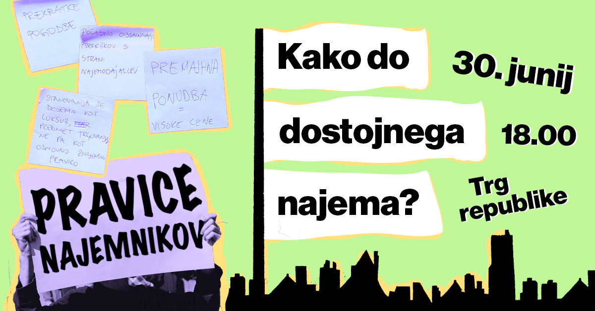 Najemniški SOS vabi na izobraževanje o najemniških pravicah, ki ga organizirajo v četrtek, 30. 6., ob 18.00 na ploščadi Trga republike.