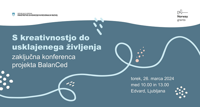 Kulturno izobraževalno društvo PiNA vabi na zaključno konferenco projekta BalanCed, ki bo pod naslovom “S kreativnostjo do usklajenega življenja” potekala v torek, 26. marca 2024, v Ljubljani. Razpravljali bodo o ravnovesju med poklicnim in zasebnim življenjem ter moči, ki jo imata kultura in ustvarjanje na naša življenja.