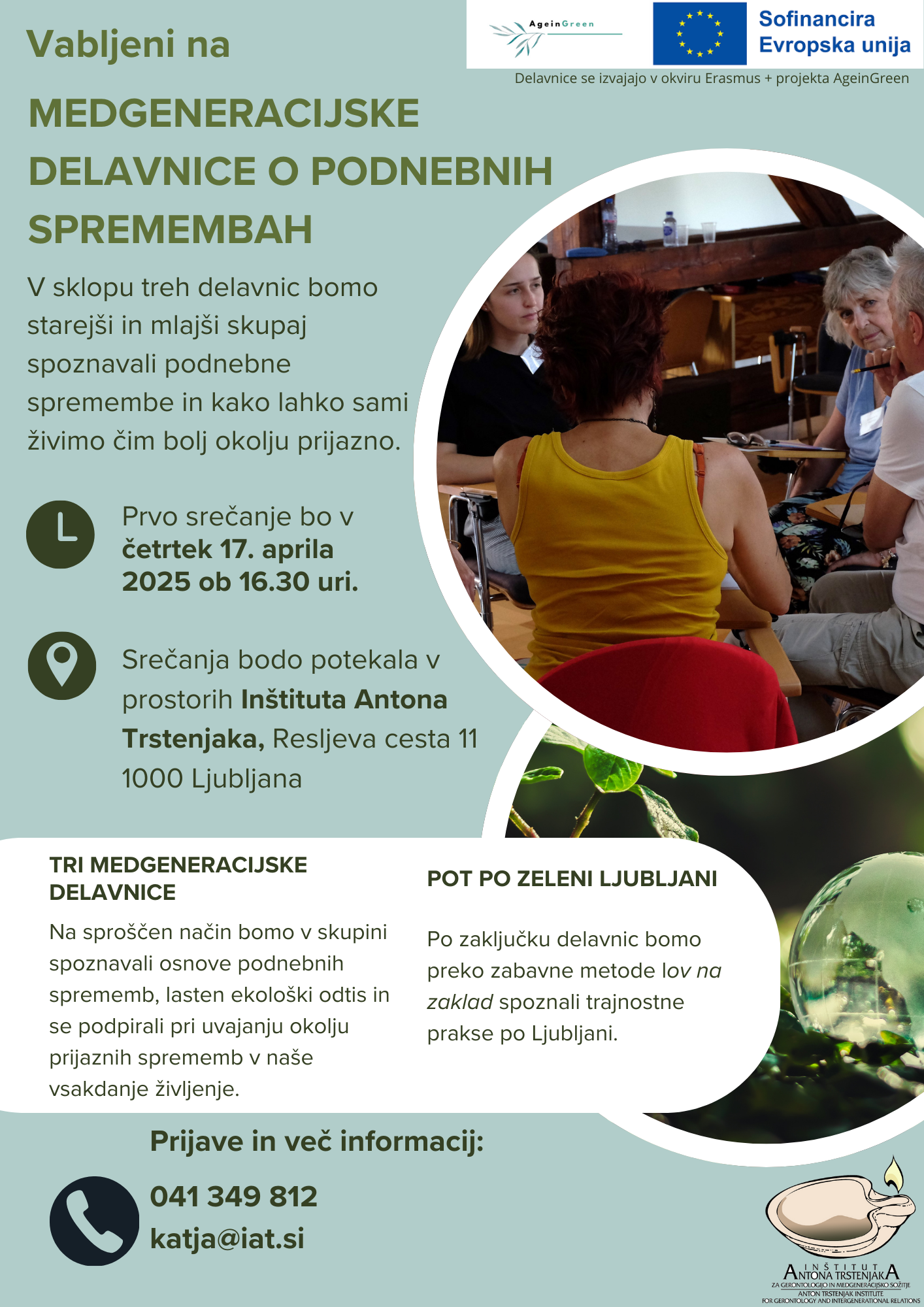 Na Inštitutu Antona Trstenjaka bodo izvedene tri medgeneracijske delavnice v katerih bodo sodelovali tako starejši kot tudi mlajši udeleženci.
