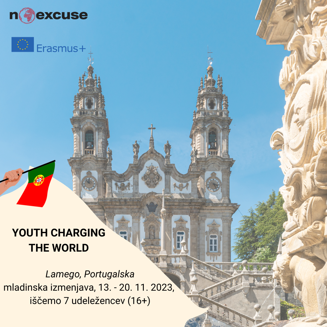 Brez izgovora je partner v projektu Youth Charging the world, v katerem bo v Lamegu (Portugalska), od 13. do 20. novembra (vključeni potovalni dnevi), potekala mladinska izmenjava (16+).
