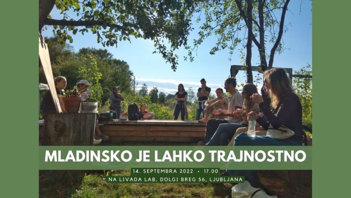 Zavod Bob vabi na dogodek Mladinsko je lahko trajnostno, ki bo potekal to sredo, 14. septembra 2022 med 17.00 in 18.30 na Prostoru Livada LAB (nasproti naslova Dolgi Breg 56, Ljubljana).