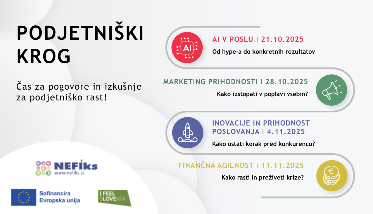 Zavod Nefiks vabi mlade podjetnike_ce k vključitvi v program Podjetniški krog: čas za pogovore in deljenje izkušenj za podjetniško rast.