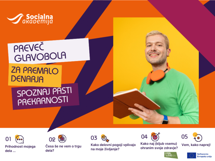 Socialna akademija vabi na enodnevno usposabljanje, kjer boste skupaj raziskovali, kako danes izgleda trg dela za mlade, katere so najpogostejše oblike dela ter kako se z znanjem izogniti pastem prekarnosti. Dotaknili se boste tudi vprašanja, kako pri delu ohraniti svoje zdravje in ravnovesje ter kako skozi delo razvijati svoje potenciale.