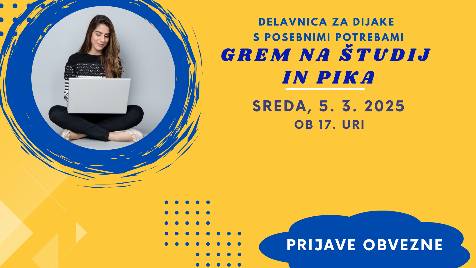 Na Društvu študentov invalidov Slovenije pripravljajo delavnico za dijake_inje s posebnimi potrebami “Grem na študij in pika”.