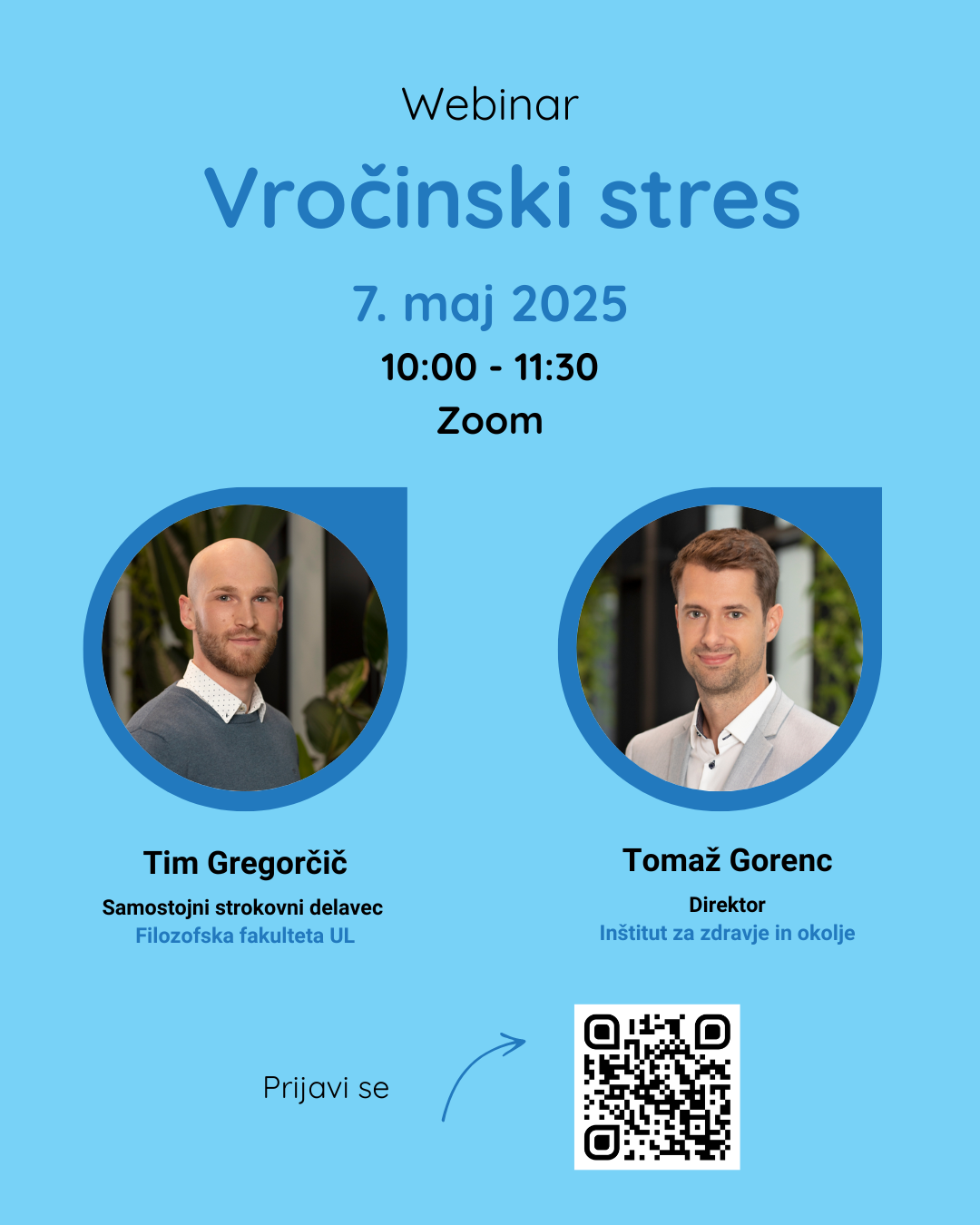 Na dogodku bo predstavljeno, kateri dejavniki vplivajo na razvoj mestnega toplotnega otoka, ki vodi do višje temperature zraka v najgosteje poseljenih območjih. Webinar bo poleg tega ponudil tudi odgovor na vprašanje, kateri dejavniki vplivajo na človekov občutek vročine v zunanjih okoljih s poudarkom na predstavitvi študije primera iz Ljubljane. Nenazadnje se bo dotaknil tudi vplivov vročinskega stresa na zdravje ljudi in okolje.