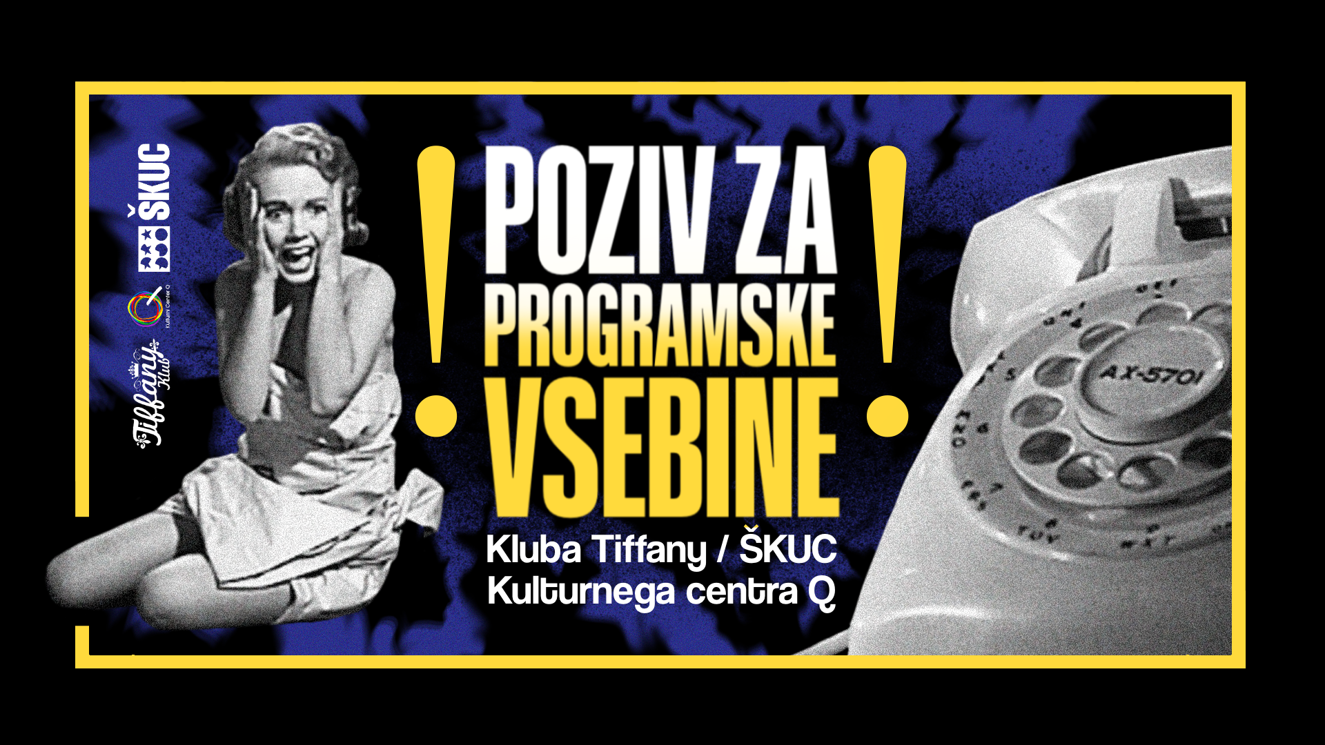 ŠKUC – Kulturni center Q / klub Tiffany vabi posameznice_ke in kolektive, ki želijo predstaviti svoje delo LGBT+ občinstvu v klubu Tiffany.