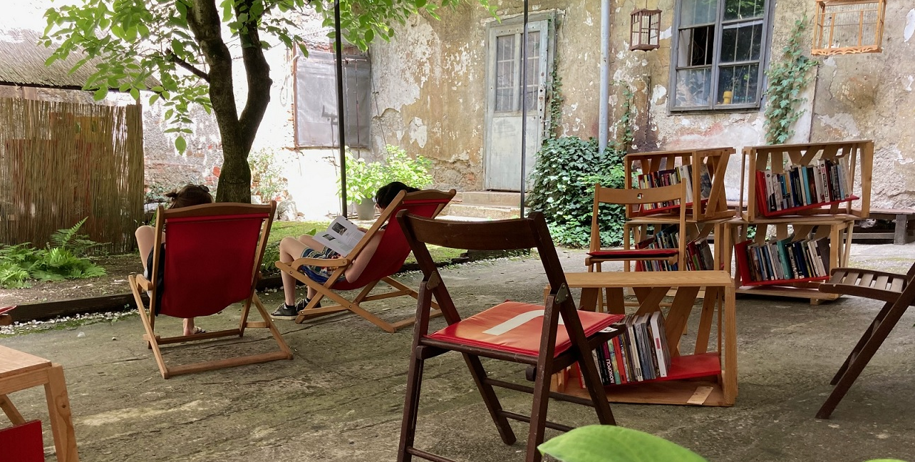 Bralni kot na ozelenjenem vrtu sredi stare Ljubljane, poleg listanja knjig, ponuja še brezplačen ogled tekočih razstav galerije. Tu občasno potekajo zanimive delavnice, pred Škucem pa se odvijata tradicionalna poletna festivala Živa književnost in Dobimo se pred Škucem.