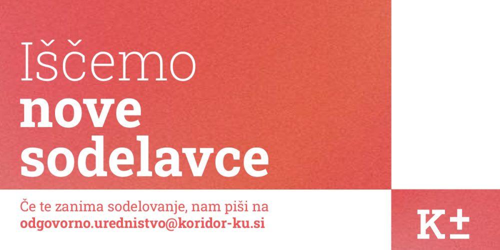 Koridor je mlad kolektiv raznolikih posameznic_kov, ki jih tako ali drugače zanima dogajanje na kulturni sceni. Kot vsako jesen, tudi letos iščejo nove prostovoljke_ce, ki bi pomagale_i sooblikovati njihov spletni kulturni prostor.