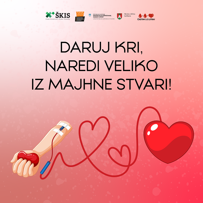 Študentska krvodajalska akcija “Častim 1⁄2 litra” bo v letošnjem letu izvedena v sodelovanju s Študentsko organizacijo Slovenije ter z Zavodom za transfuzijsko medicino. Z zavedanjem, da je darovanje krvi plemenito dejanje, so se na Zvezi Študentskih klubov Slovenije odločili, da h krvodajalskim akcijam v letošnjem letu, spodbujajo v mesecu oktobru in novembru.