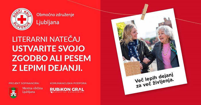 Če imate žilico za pisanje, potem vam bo všeč kreativni izziv Rdečega križa Ljubljana – v največ 300 besedah spišite zgodbo ali pesem in predstavite vse prednosti lepih dejanj za starejše. In sicer brez besede solidarnost. Zakaj? Ker želijo, da se solidarnost v vašem tekstu začuti in pokaže z dejanji in ne le v besedah. Z izbranimi literarnimi deli namreč želijo spodbuditi še več lepih dejanj, povezanost, prijaznost in empatijo med ljudmi, še posebej do starejših.
