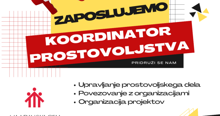 Društvo mladinski ceh razpisuje delovno mesto koordinator_ka prostovoljstva.