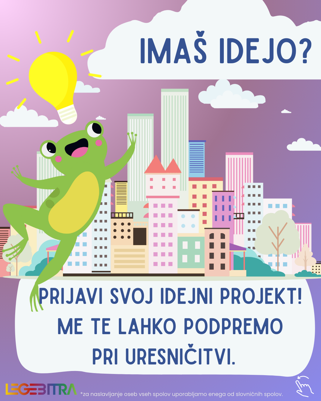 Natečaj Mlade za mlade Društva Legebitra je priložnost, da osebe v starosti med 14 in 29 let pridobijo sredstva za uresničitev svoje ideje, obenem pa soustvarjajo program za mlade LGBTIQ+ osebe.